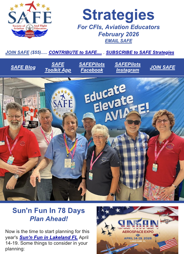 Help us create the aviation education profession we all want... An organization that promotes accountability, transparency, professionalism and fairness in everything we do. Join SAFE today!
